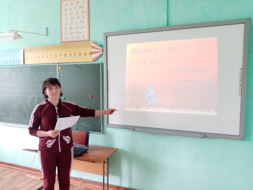 В 9 классе пошёл классный час на тему: "Пожары в жилых и общественных зданиях, и причины их последствия". В ходе беседы были обсуждены причины возникновения пожаров, средства тушения и действия при возникновении возгорания. Ребята познакомились со знаками “Запрещается курить”, “Запрещается пользоваться открытым огнём”, “Запрещается тушить водой” и “Осторожно! Легковоспламеняющиеся вещества” и узнали, где они изображаются.