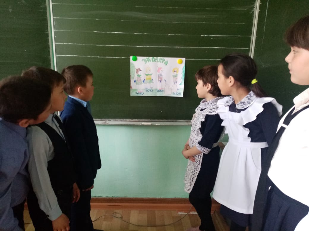 Во втором классе прошёл «Урок Эколят», в третьем классе игра «Экологический светофор», в старших классах беседа «Экология и мы» Дети познакомились со сказочными героями “Эколятами”-друзьями и защитниками природы: Шалуном, Умницей, Тихоней и Ёлочкой. Ребята узнали о правилах поведения в природе, как надо поступать и как поступать нельзя, узнали о животном мире родного края, с историей возникновения Красной книги, растениями и животными, находящимися под охраной государства.