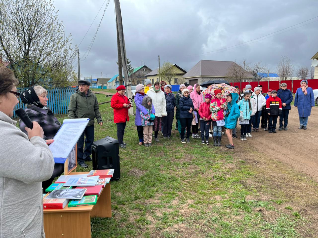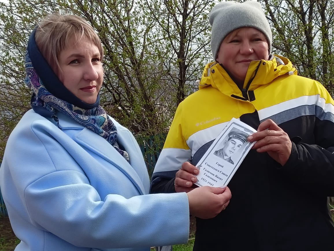 Библиотекарь Ханова Г.Х. ознакомила с биографией и о том, как в годы ВОВ наш герой храбро сражался и защищал Родину от врагов. Учащиеся рассказывали стихи о войне, волонтеры раздали буклеты о Герое и фронтовые письма-треугольники с биографией героя. Вручая, письма старшему поколению, ребята говорили, чтобы ныне живущие люди помнят о подвиге Галимова В.Г. и гордятся своим Героем.
